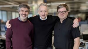 Geoffrey Hinton (Wimbledon, Inglaterra, 6 de diciembre de 1947) es un científico computacional, científico cognitivo y psicólogo cognitivo británico. Fue galardonado con el Premio Turing en el 2018 junto con Yoshua Bengio y Yann LeCun por su trabajo en aprendizaje profundo. Conocido como el «padrino» de la inteligencia artificial, renunció a Google a los 75 años por los peligros que reconoce en las nuevas tecnologías. En 2024 recibió el Premio Nobel de Física junto a John Hopfield.